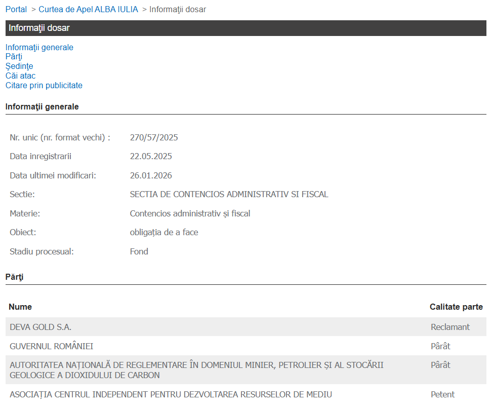 Și așa ajungem în 26 ianuarie 2026, la 8 luni de la intentarea acțiunii în instanță de către Deva Gold SA.